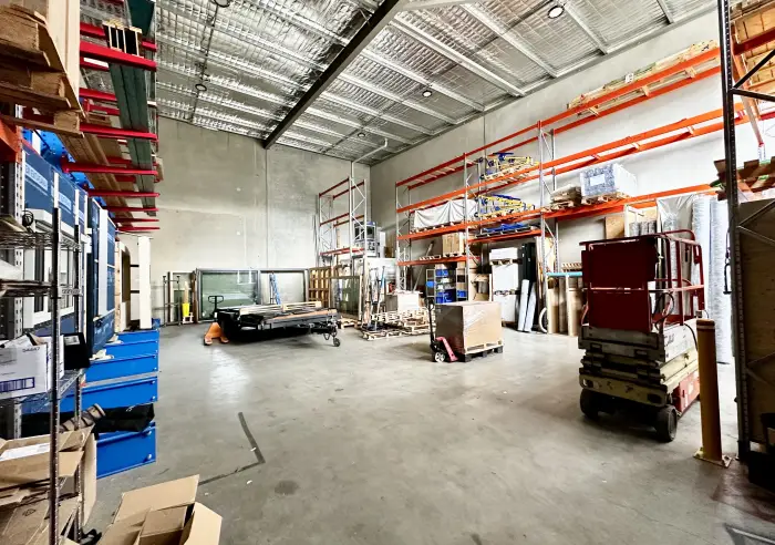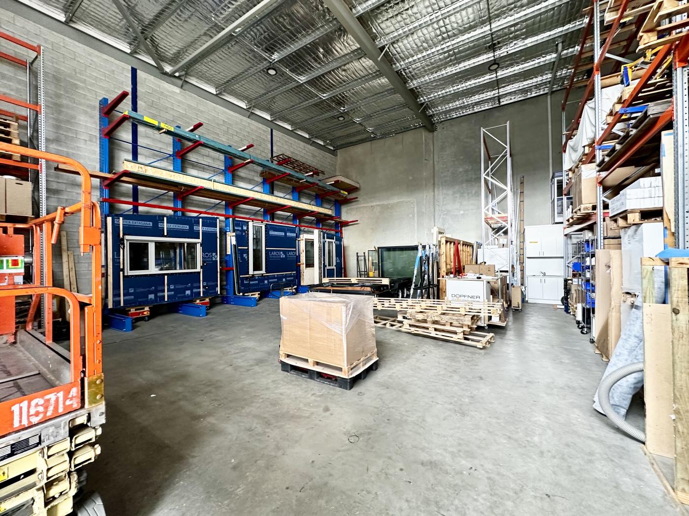 Spanning approximately 194m2, this unit provides versatile space, featuring a high-clearance electric roller door that facilitates easy vehicle access and efficient operations. Inside, the adaptable layout can be customised into a showroom or office, and includes a kitchenette and bathroom for added convenience. On-site parking ensures accessibility for both employees and customers.