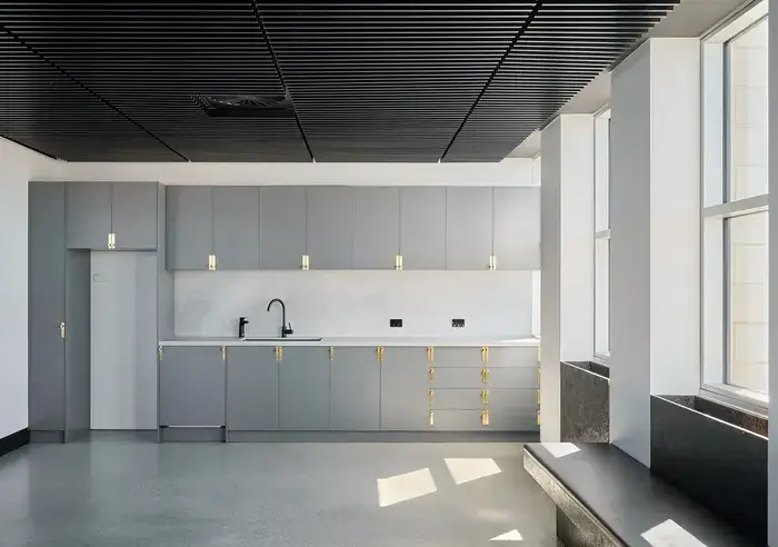 The kitchen and meals space is extremely generous and suitable for the business that embodies positive team culture.